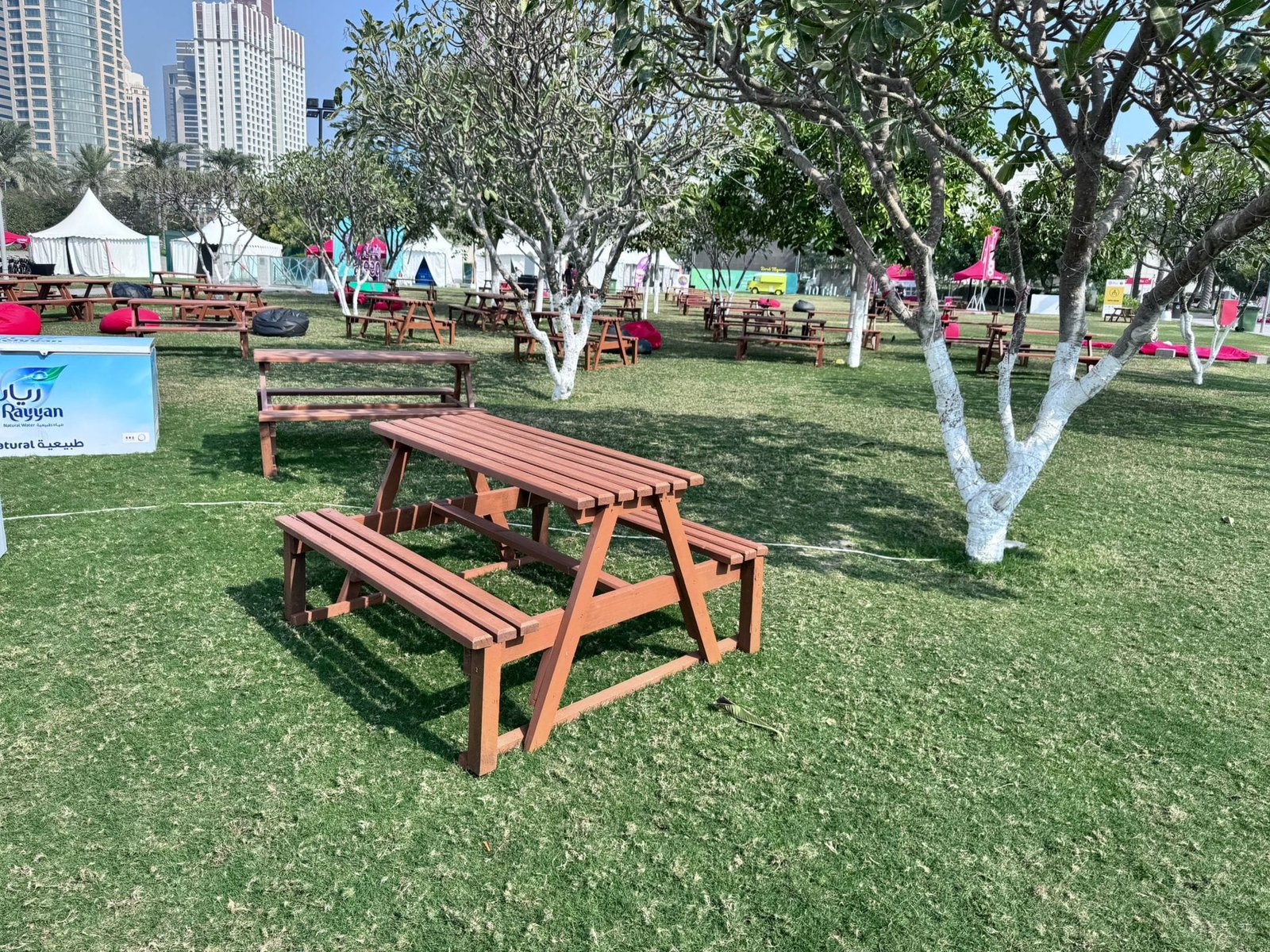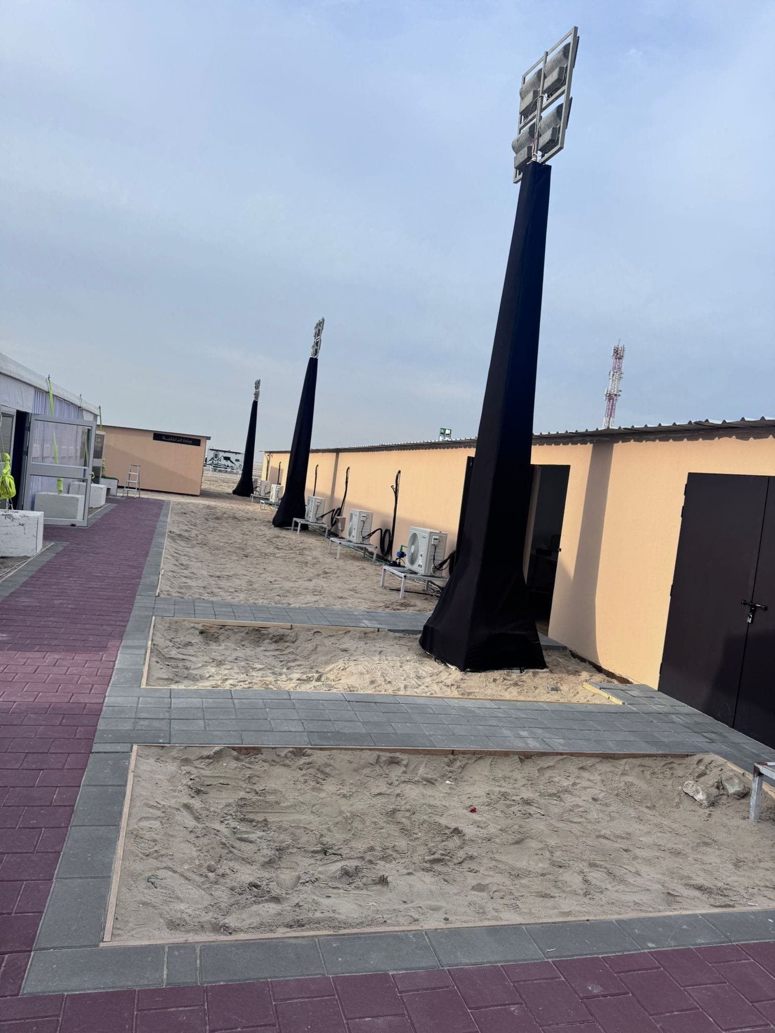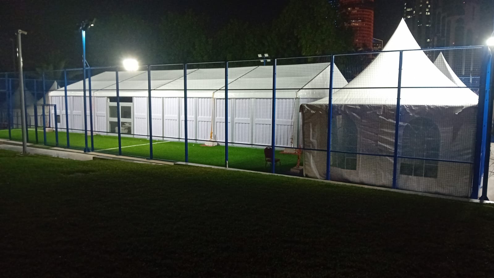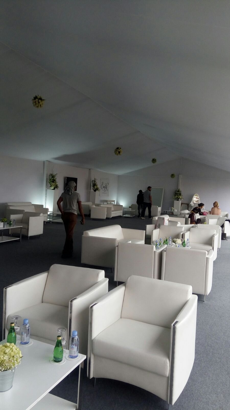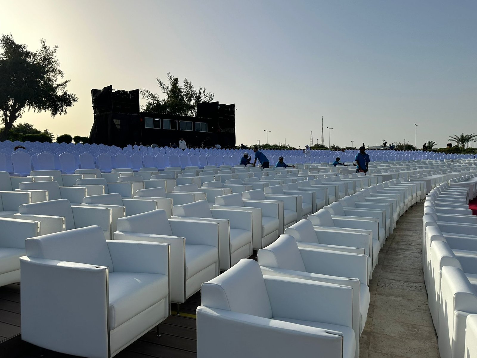 نوفر الخيام والقاعات المؤقتة مع الطاولات والكراسي وأنظمة الصوت والإضاءة.