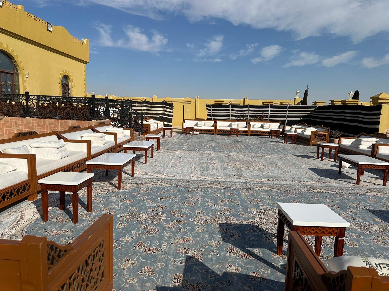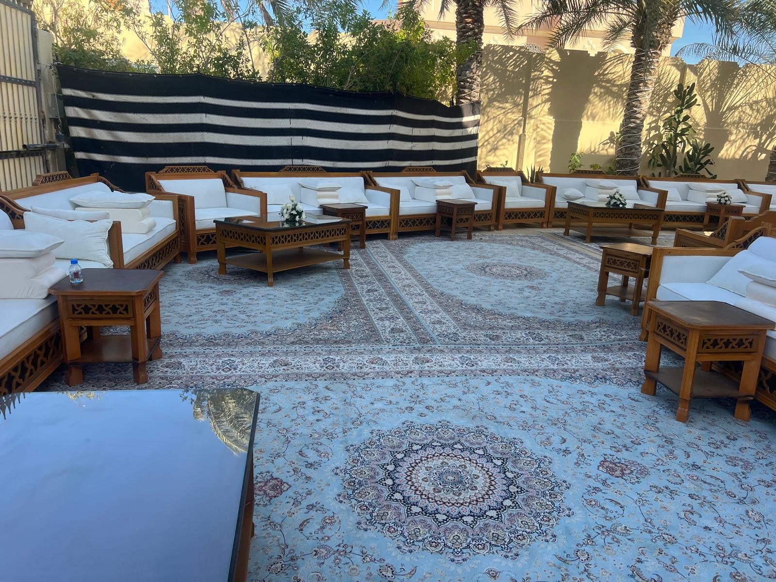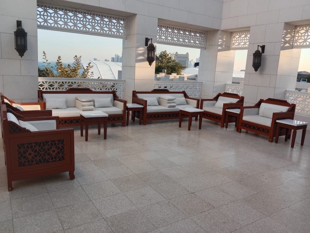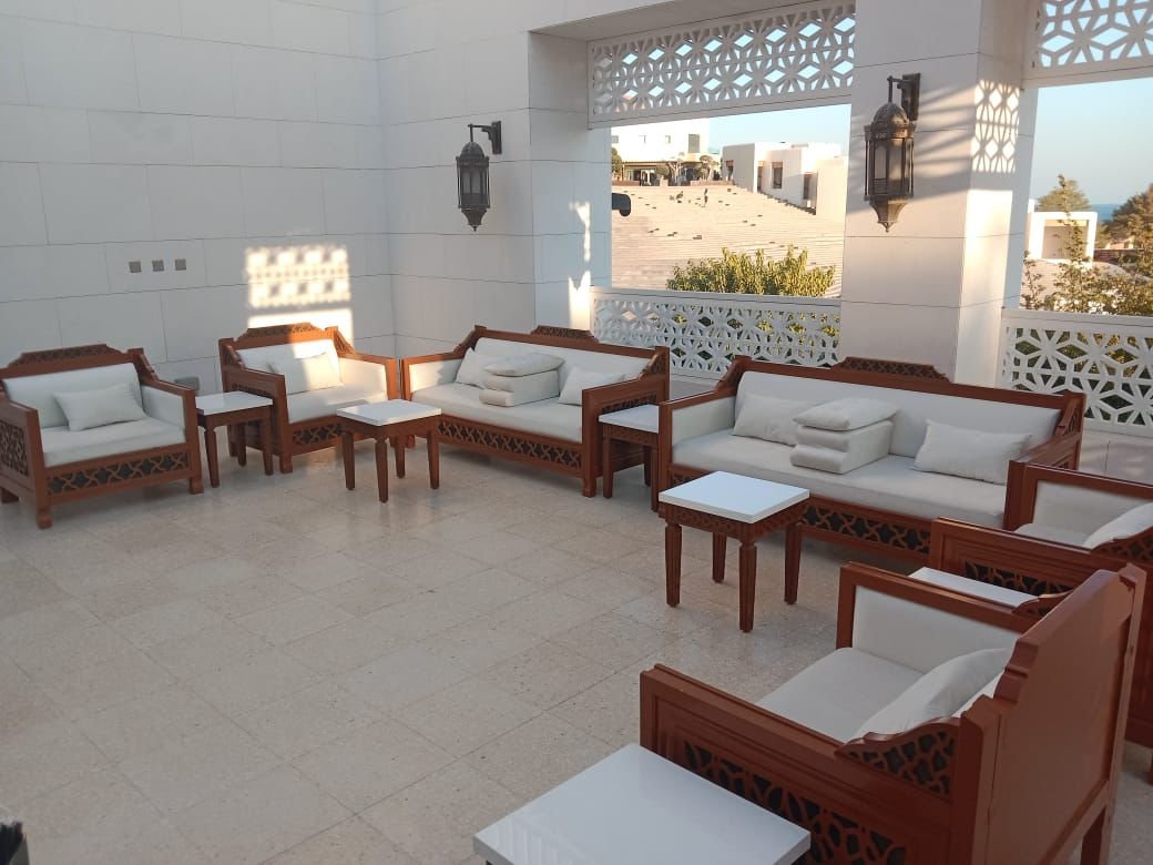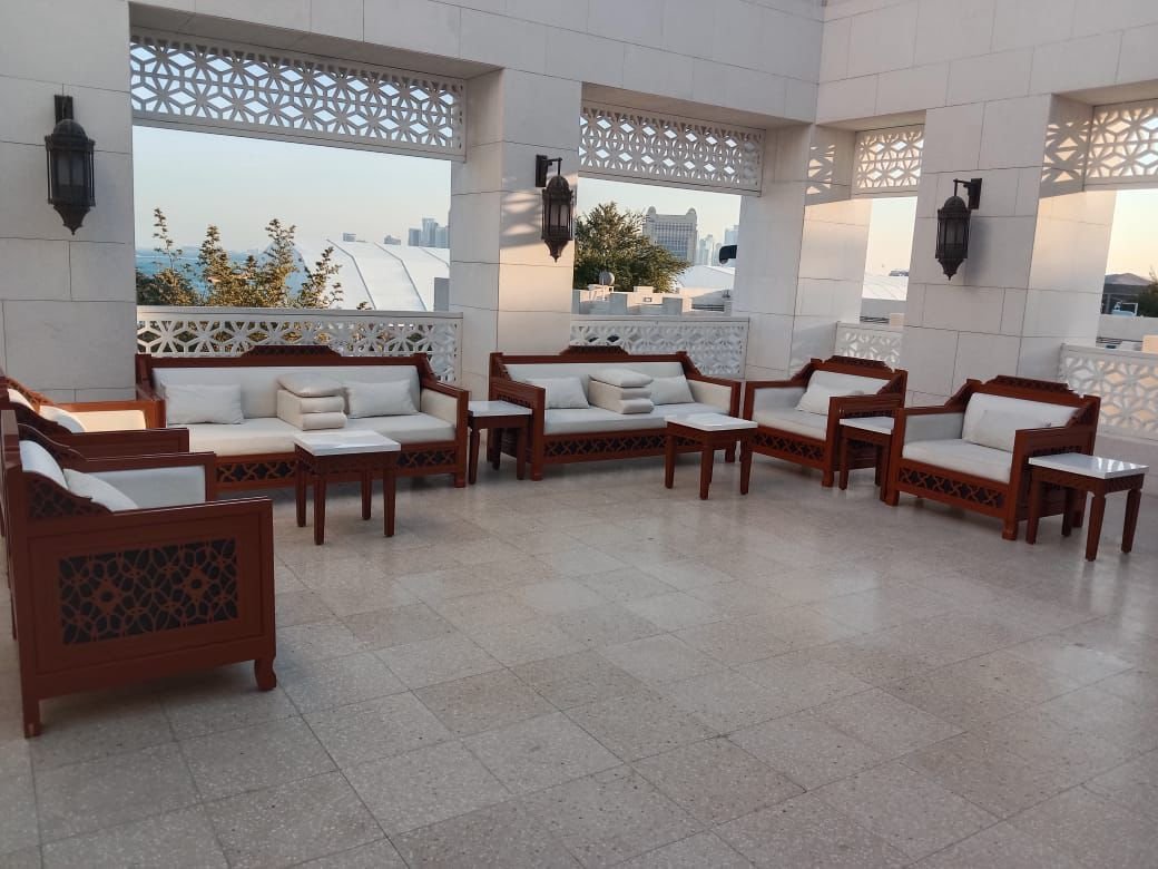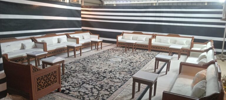نقوم بفرش المكان بالكامل بالكراسي والطاولات والسجاد والكنب العربي المميز.