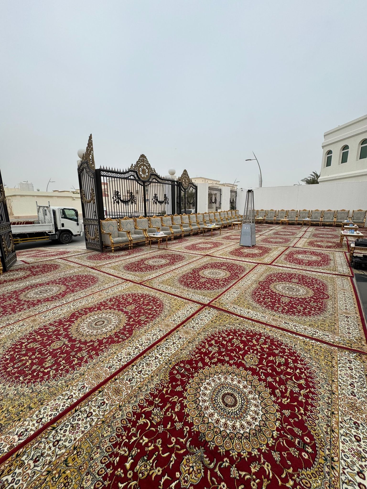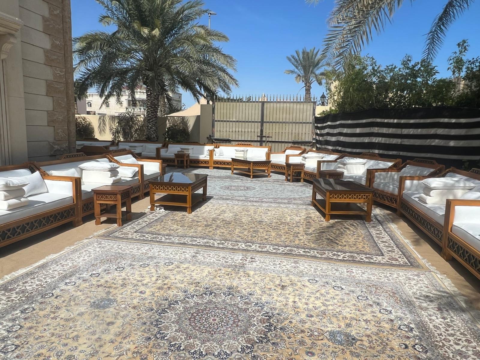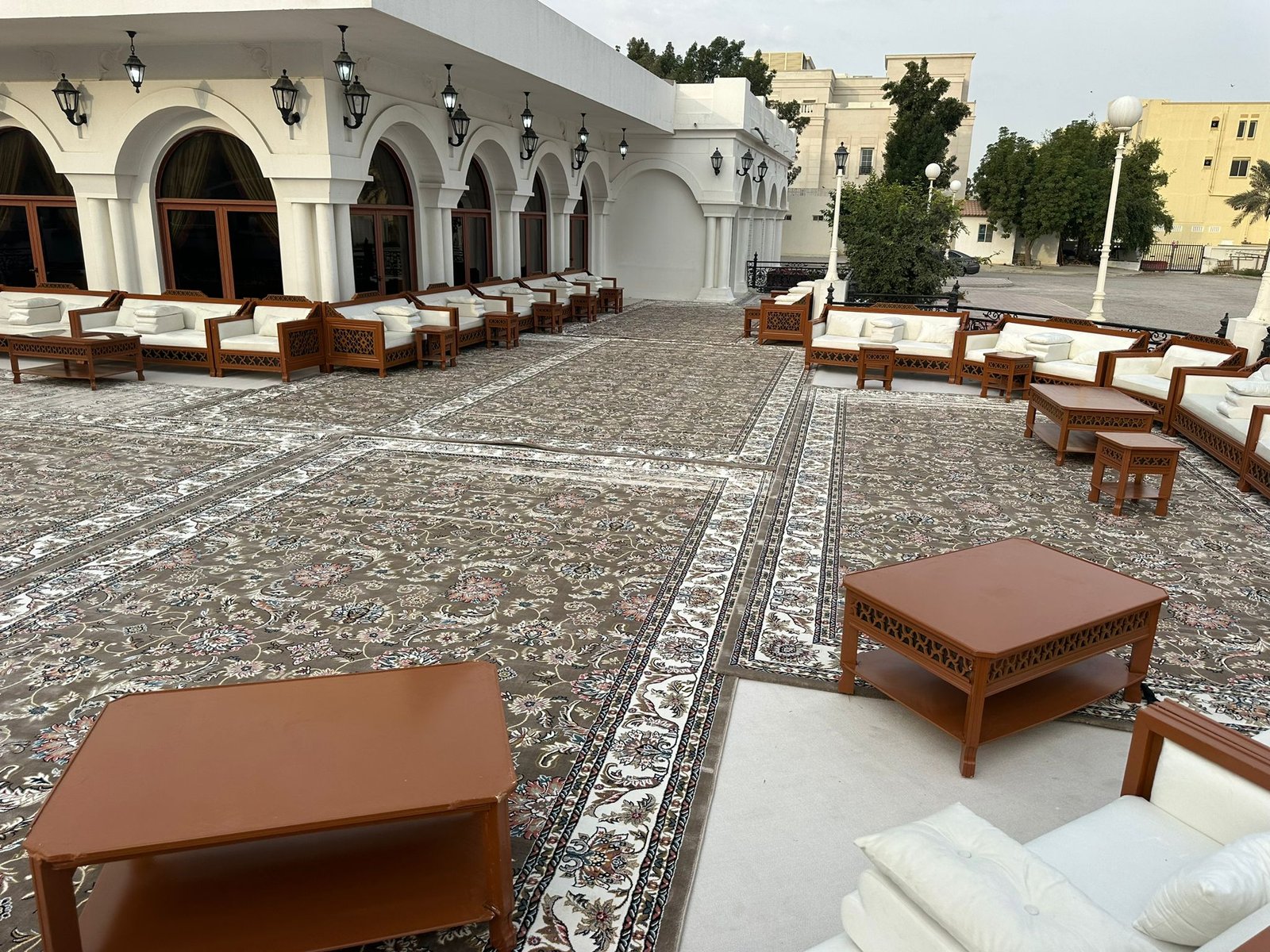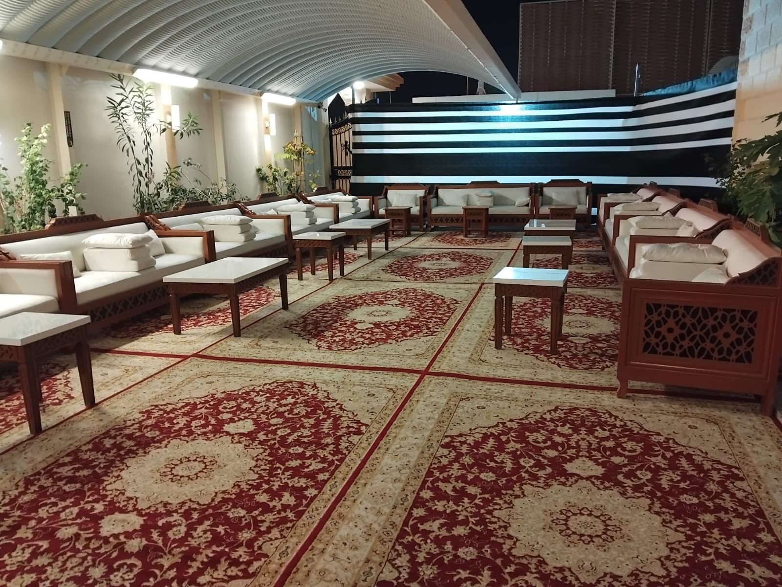 نقوم بفرش المكان بالكامل بالكراسي والطاولات والسجاد والكنب العربي المميز.
