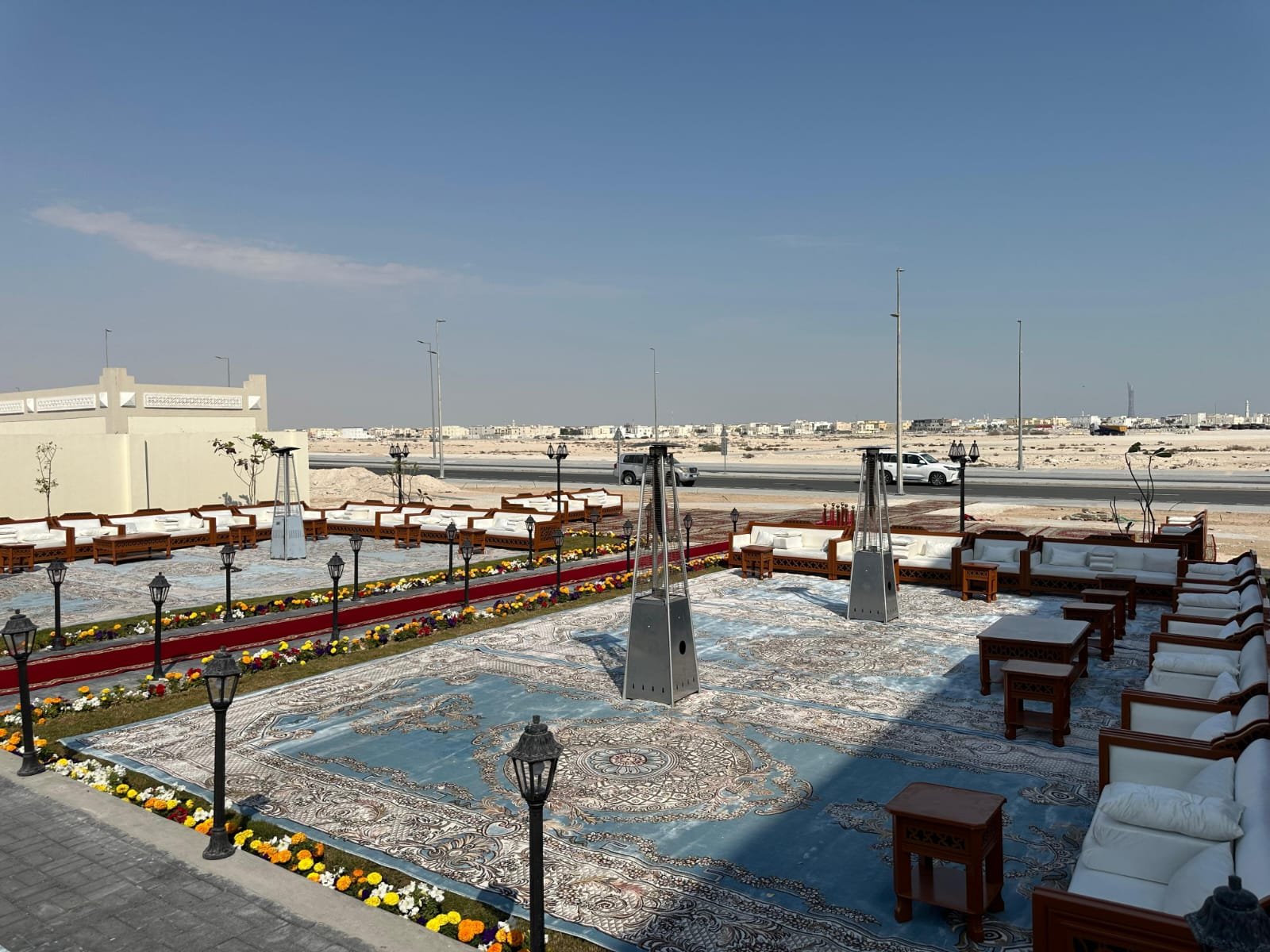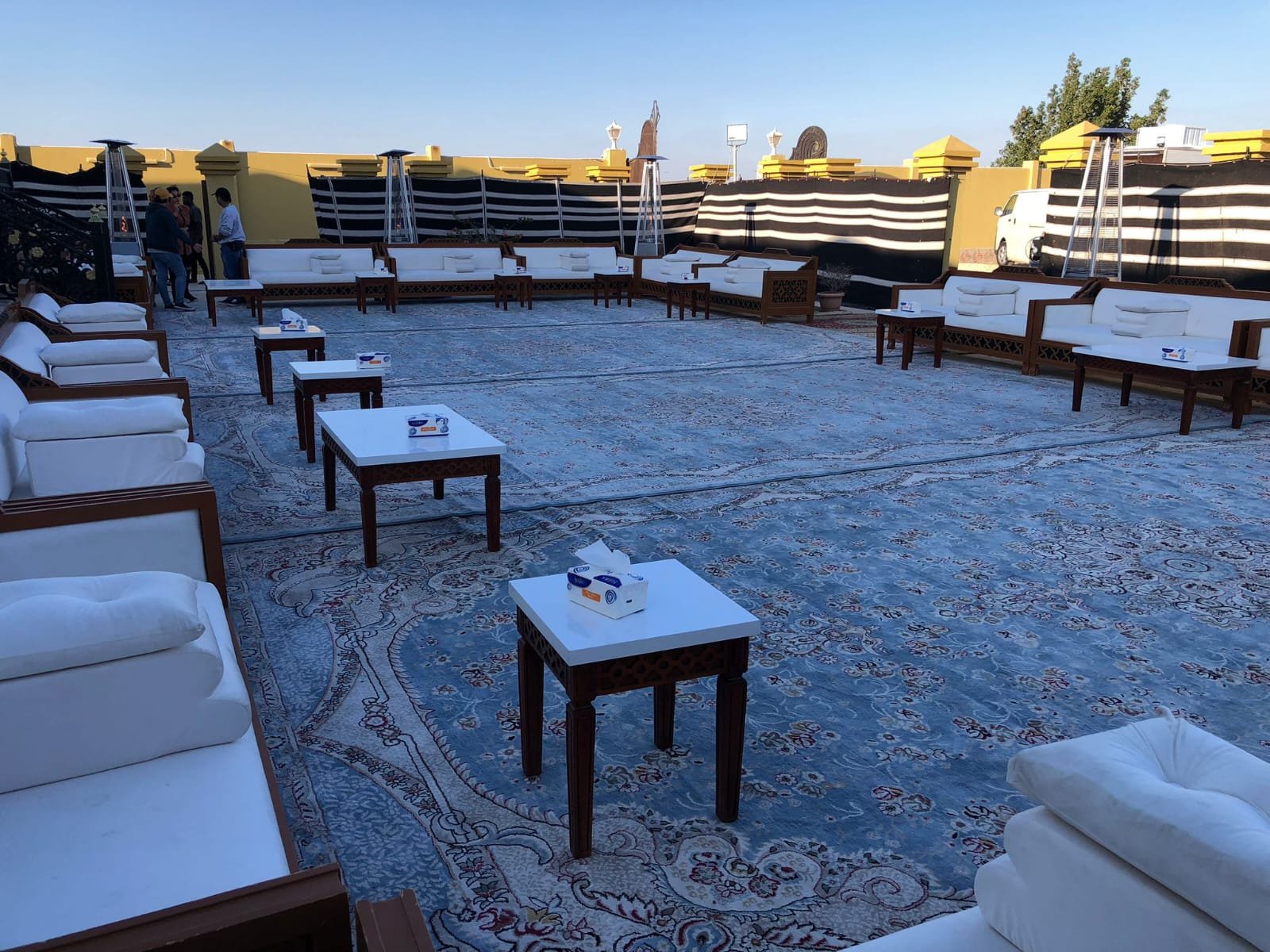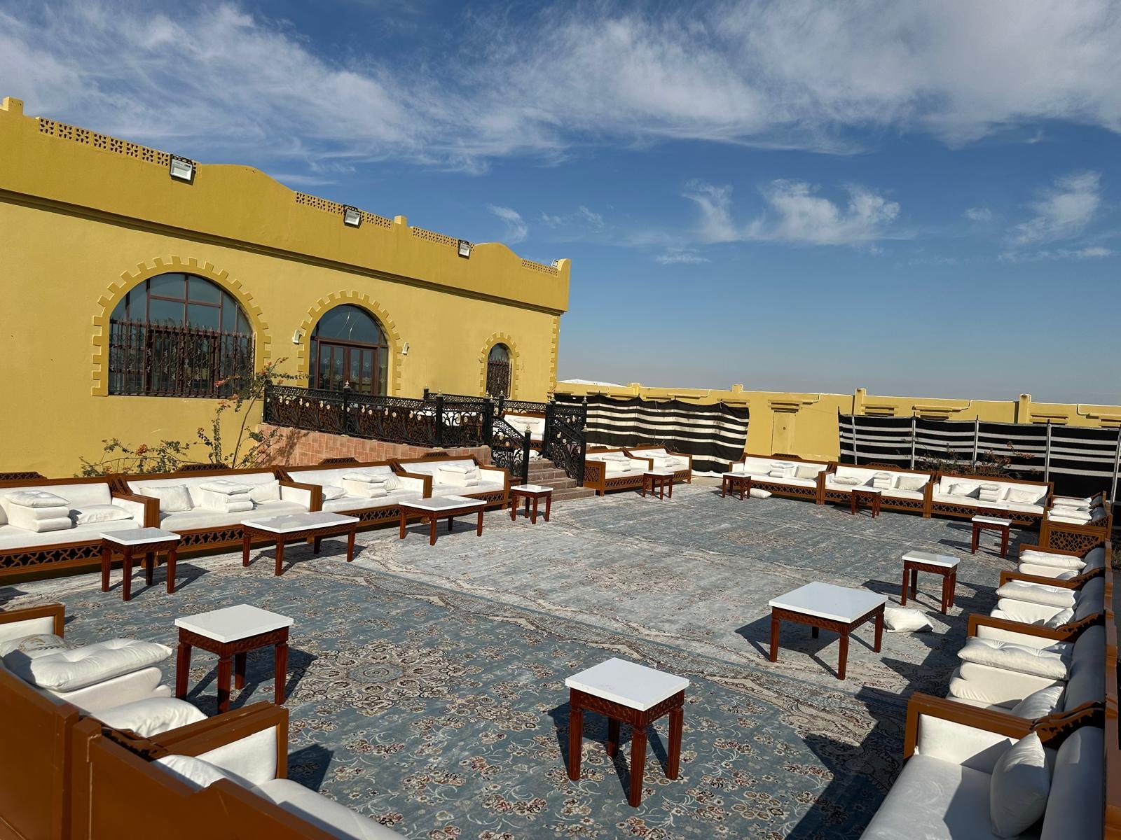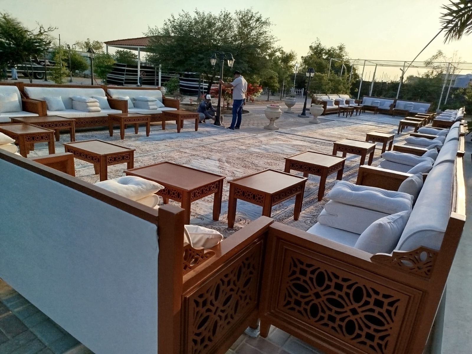نقوم بفرش المكان بالكامل بالكراسي والطاولات والسجاد والكنب العربي المميز.